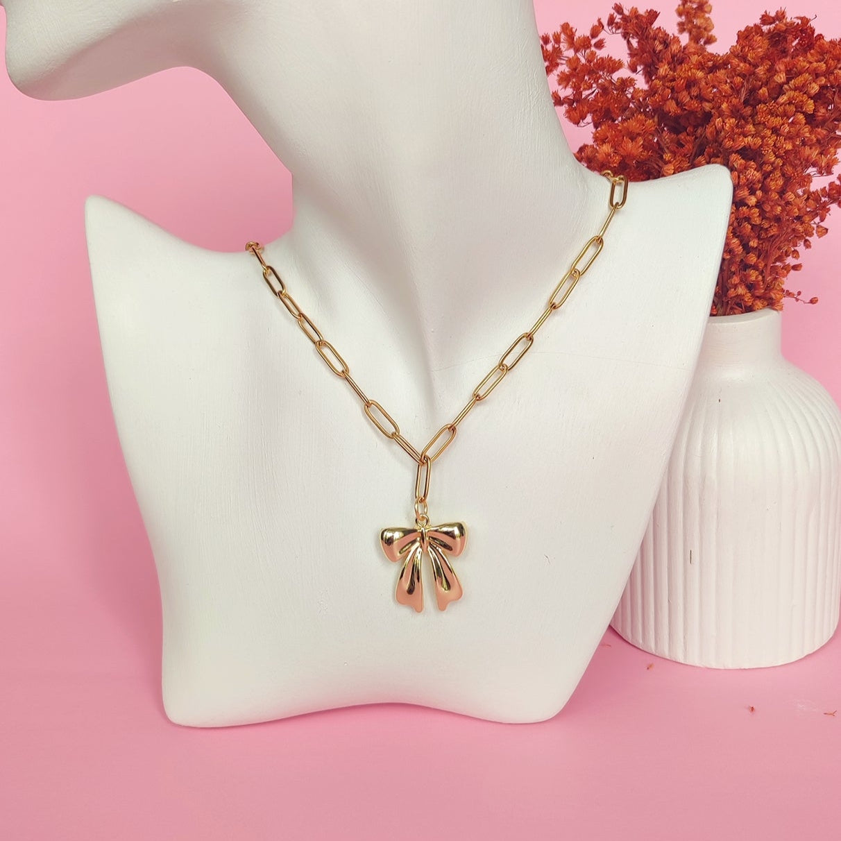 Nuestros collares Carolina son el toque dorado que necesitas para realzar tu estilo. Con diseños únicos, desde la delicadeza de un lazo hasta la audacia de un corazón inflado, estas piezas están pensadas para añadir sofisticación y sentimiento a cada uno de tus looks.